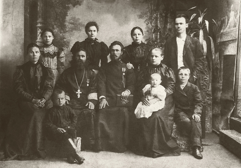 Священник Алексий Меркурьев (сидит с наперсным иерейским крестом) с семьей.
